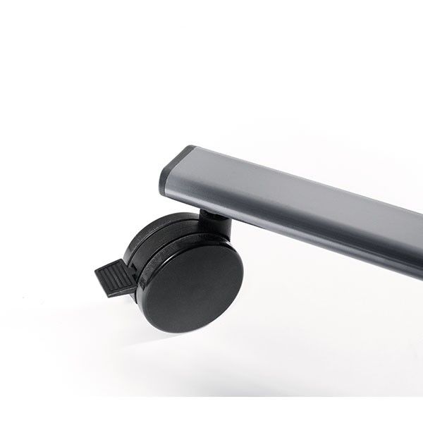• Стабилна стоманена стойка с четири колела, две от които се заключват.