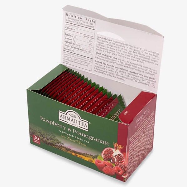 Чай Ahmad Tea Raspberry&Pomegranate, Зелен с Малина и Нар 20 бр.